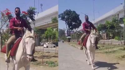 देवास में बैंक कर्मचारी का अनोखा अंदाज, घोड़े पर सवार...