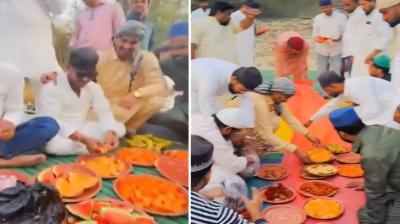 गंगा के बाद अब मंदिर के पास उड़ाई इफ्तार की...