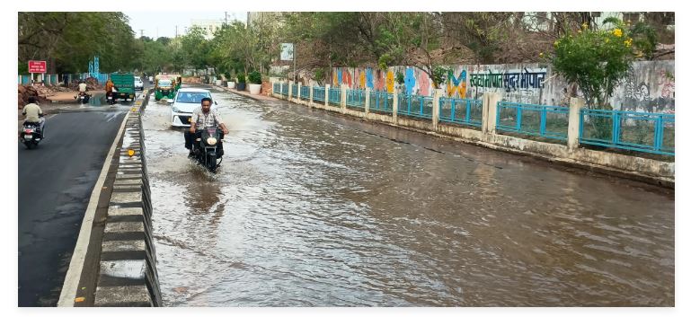 भोपाल में लोक भवन के सामने सड़क धंसी, पानी बहने...