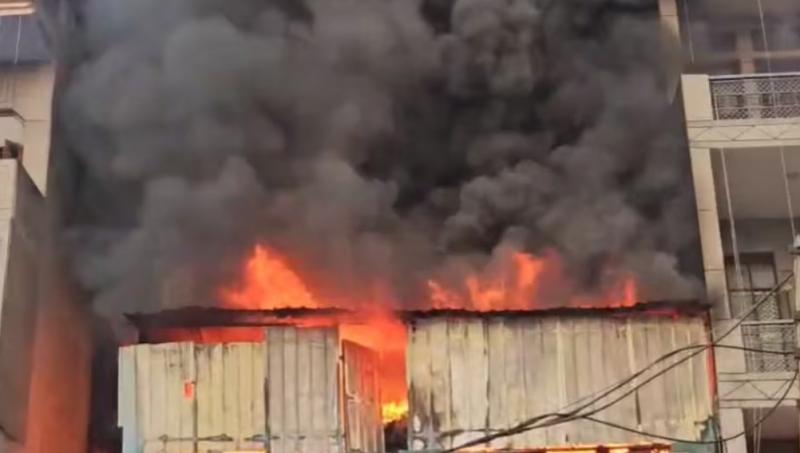 नरेला में जूते की फैक्टरी में भीषण आग, आसमान में...