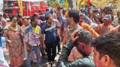 खाकी पर चढ़ा फागुन का रंग, पुलिस लाइन में SP-IG ने लगाए ठुमके