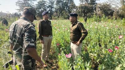 बलरामपुर के तुर्रीपानी गांव में अफीम की खेती का खुलासा, दो गिरफ्तार; 2 करोड़ की अफीम जब्त