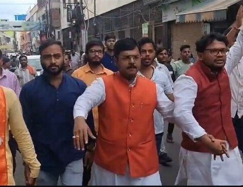 अवैध बूचड़खानों के खिलाफ हिंदू संगठन का निगम घेराव, पुलिस रोकने पर हनुमान चालीसा पाठ